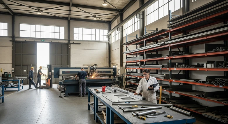 Processamento de chapas e tubos, fabricação de equipamentos, móveis metálicos, estruturas e peças diversas.